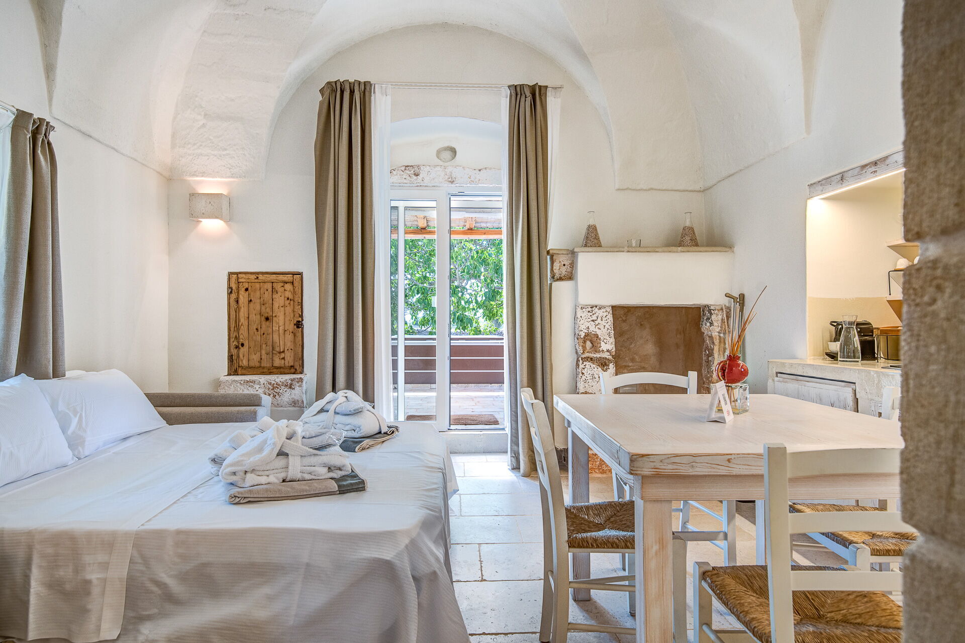 Independent suite for rent, "La Torretta - Corte dei Messapi" with bedroom, bathroom and living room with kitchen. It can accommodate up to two people + two children.