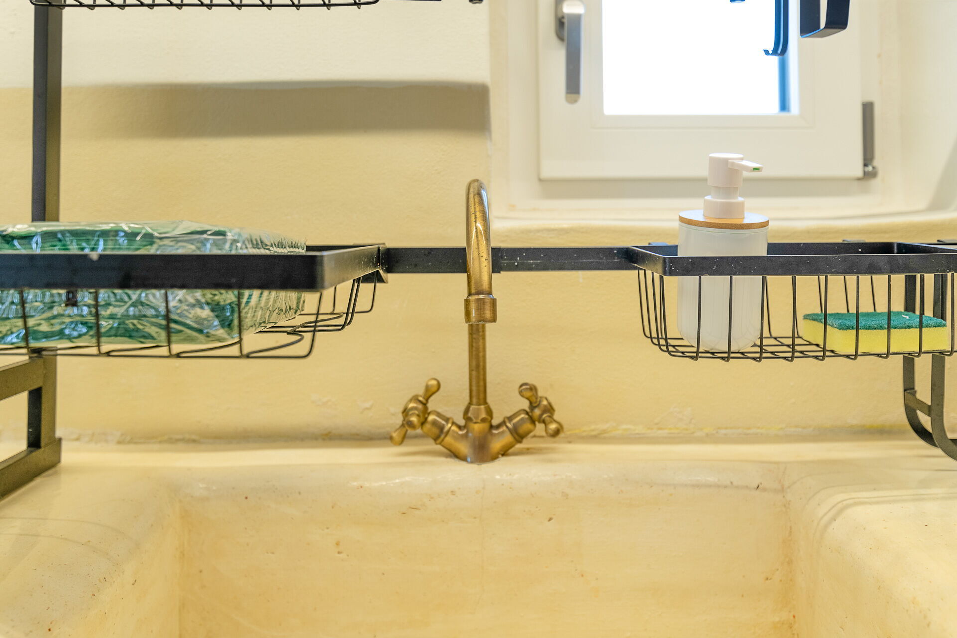 The entrance opens into the kitchen complete with electric stove, electric kettle, capsule coffee machine, mini-fridge and living room with sofa and dining table. The bedroom has a stone barrel ceiling and private bathroom, stone sink, large shower with fine finish.